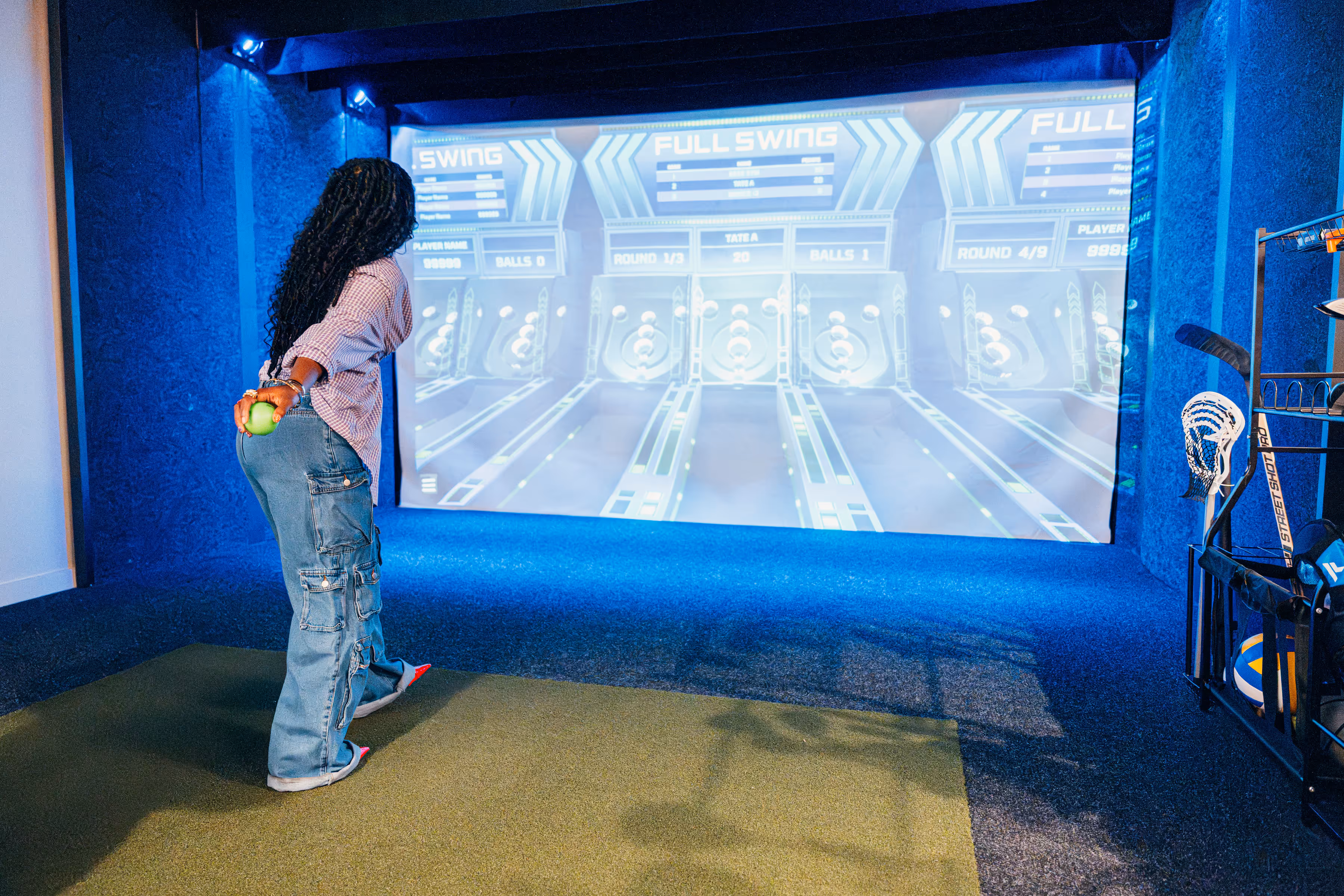 All the sports, one screen. Hit home runs, score goals, or tee off on world-class golf courses, all indoors on a massive 14-foot screen.